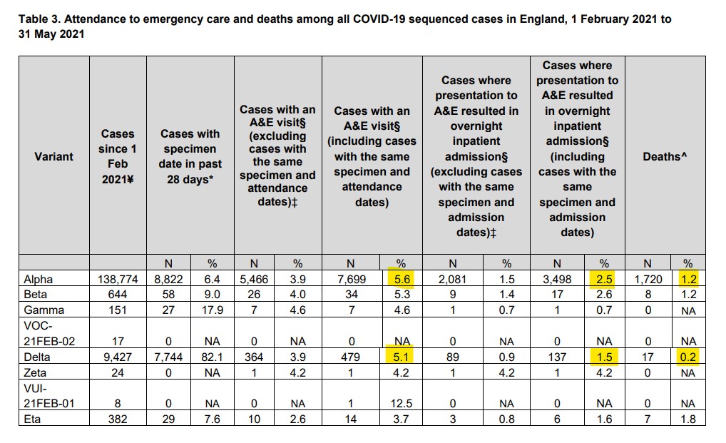 An analysis of 38,805 sequenced cases in England revealed that the Delta [Indian] variant was associated with a 2.61 times higher risk of hospitalisation within 14 days of specimen date than the Alpha [British] variant. There was a 1.67 times higher risk of A&E care within 14 days. These figures take into account factors such as age, sex, ethnicity, area of residence and vaccination status.