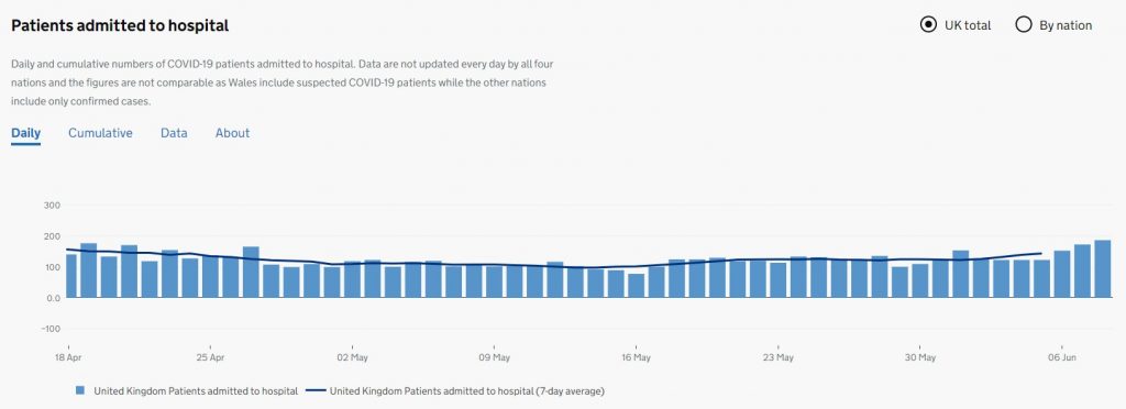 The Prime Minister made much of a recent “doubling” in Covid hospital admissions, though on the Government dashboard hospital admissions are still short of doubling.