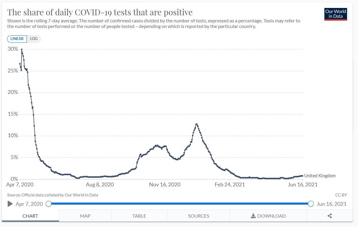 The British Isles must have a very different climate to mainland Europe then, which has had a decline in +tests, especially Germany, which is very steep indeed. And they cannot claim it is a successful vaccination campaign, as they had about 30% done when the decline started.