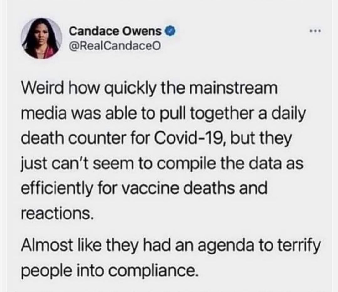 I am the same. I’m a dye in the wool vaccine skeptic of many year’s standing. But even I wouldn’t’ have believed the level of both compliance, and sickness and death. And now the desperate silencing of the families left behind. But most if all the silence on the part of neighbours and friends valiantly “supporting” these devastated families. We aren’t allowed to discuss it or reference it. It’s a conspiracy of silence, but I can feel them wondering who is next?