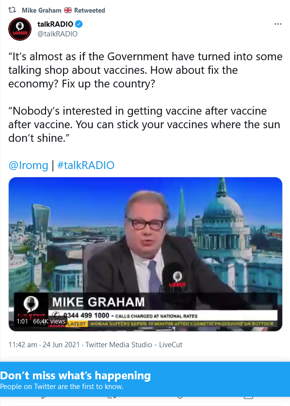 ‘Don’t take the Vaccine’ because it’s a ‘theatrical poison’ should be the take home here.