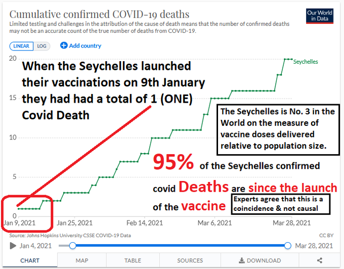 Comparing the recovery/fading of the virus in the UK with the rise in infection in the Seychelles and then drawing the conclusion that the mRNA is better is NOT good science or science of any description. In the UK the virus faded away with much the same rate last year without vaccines and the vaccines roll out began before the natural peak of an endemic virus around Dec/Jan and the UK is on a different latitude to the Seychelles. What can be construed from this is that the AstraZeneca appears to make matters worse and this can be confirmed by looking at all countries where this has been injected. As for mRNA, we will not know what the long term affects are until at least two more ‘waves’, formerly known as seasons.