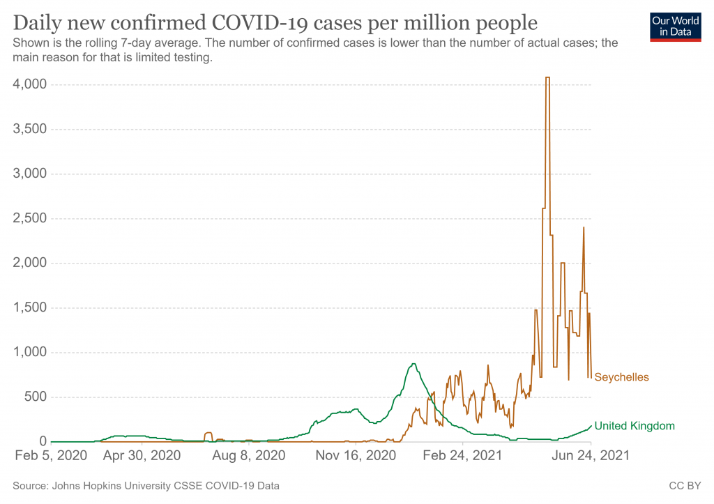 but the main difference between UK and Seychelles is that they had barely a case until 2021