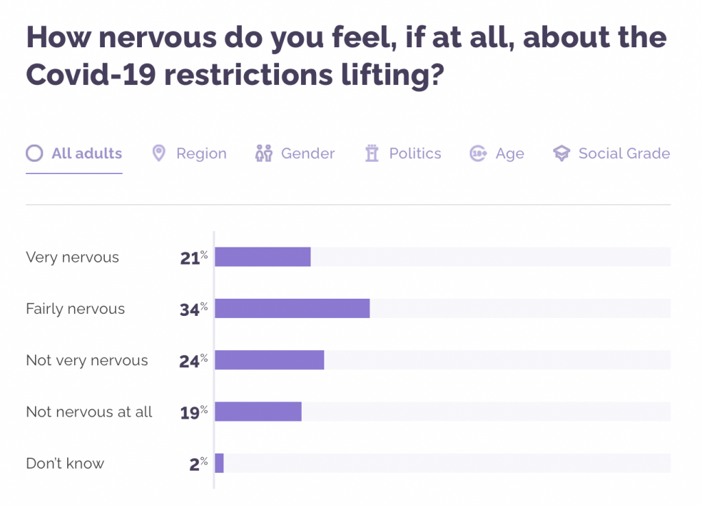 Stop Press: There’s bad news from YouGov, too. Its latest polling suggests that more than one-fifth of Brits are “very nervous” about lockdown restrictions ending and more than 50% are either “very nervous” or “fairly nervous”.