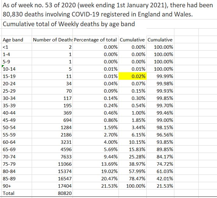 And if we look at all deaths with COVID on the death certificate in 2020, only 0.02% of those deaths were in the under 20s.