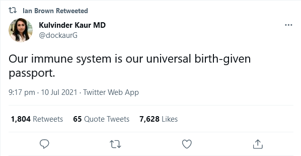 Yesterday we witnessed thousands upon thousands of soccer fans cheering on their team ina stadium in close proximity with one another without restrictions and mask-wearing, we witness government elites (including members of sage), royalty and celebs hob-nobbing at Wimbledon without any restrictions and mask-wearing, we see that this government is willing to waver any restictions for travellers who wish to fly into and out of Britain when it suits them – while the rest of us have to prove we have had the vaccine or paid hundreds of pounds for a negative test. This doesn’t sound like a national emergency to me – this sounds more like a government behaving like a bunch of authoritarian dictators. What I fail to understand if that the vaccines work and protect you from the virus then why still descriminate against those who have chosen not be vaccinated and if (as seems to be the case) that these vaccines are not working with the new variants (which they don’t) – then why the need for vaccine passports? You can be vaccinated and still get the virus variants and pass them on. No sorry , this is a tyrannical government that is out to abuse… Read more »