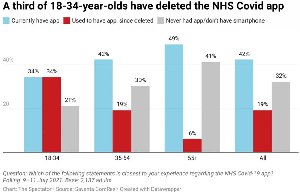 Is this the True Level of Opposition to Restrictions? Over Half of 18-34 Year Olds Have Deleted the NHS Covid App or Never Had It
