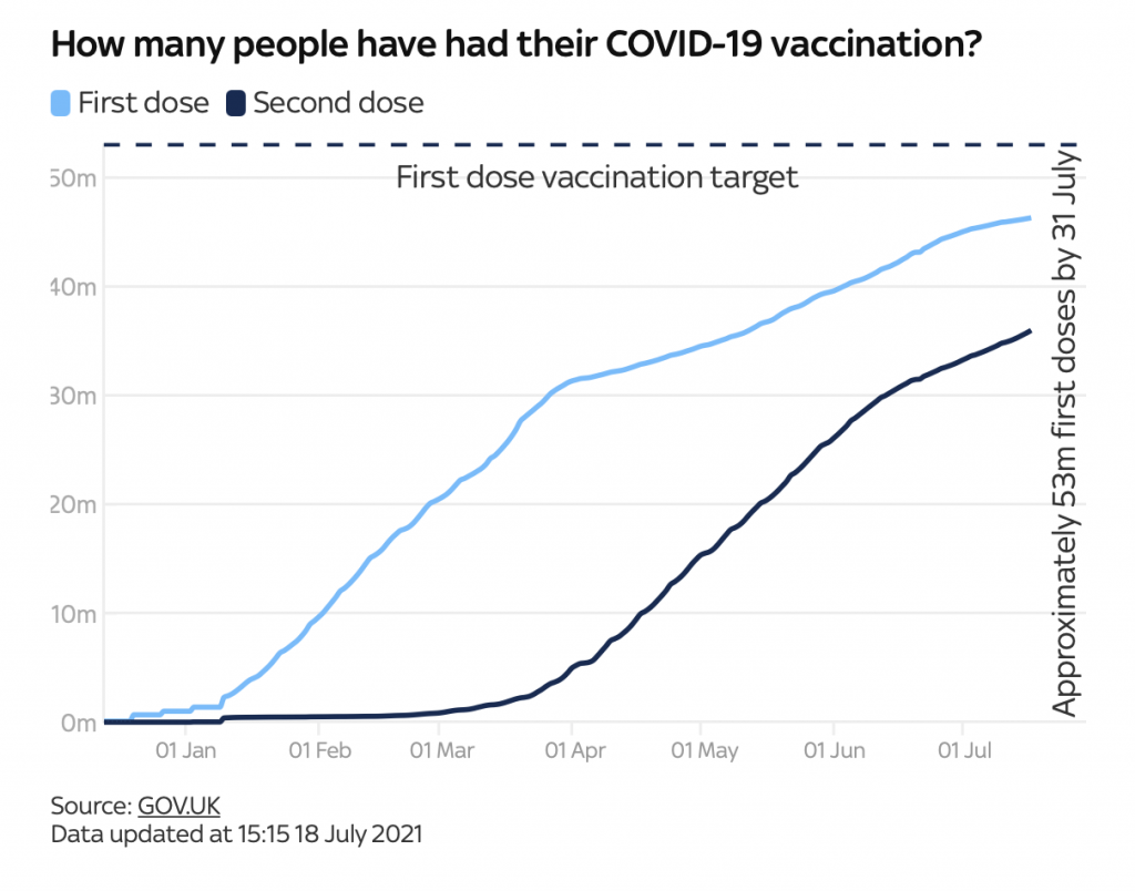 Boris Johnson had set July 19th as the date to offer all over-18s a jab, as well as to fully vaccinate two in three people.
