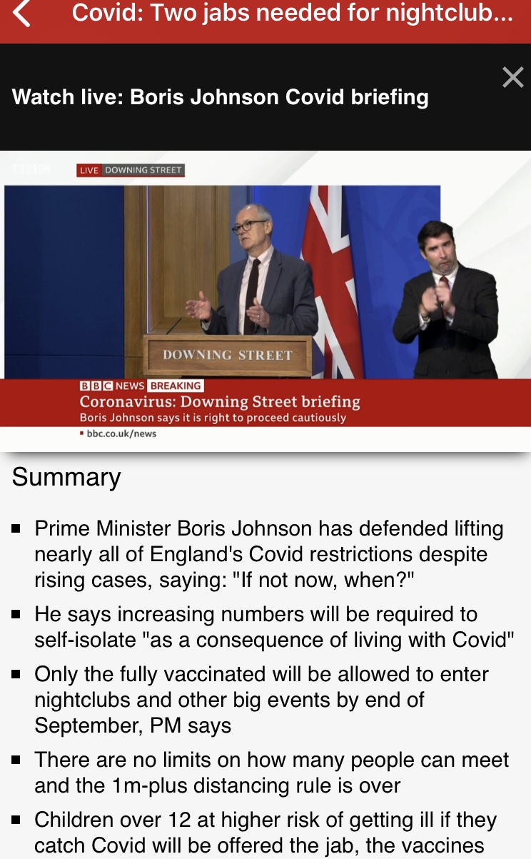 - “How Boris Johnson and Rishi Sunak took just two hours 20 minutes to back down on self-isolation” – The Telegraph reports how the Prime Minister and the Chancellor of the Exchequer came to be spending Freedom Day in self isolation