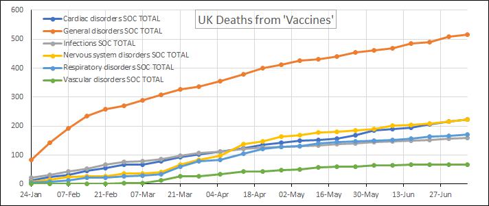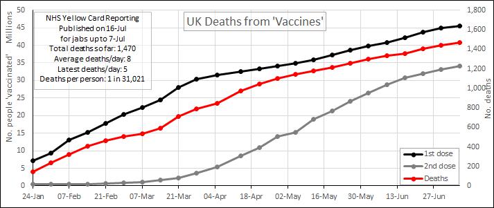 According to an updated report published on July 16th (covering the period up to July 7th), the MHRA Yellow Card reporting system has recorded a total of 1,059,307 events based on 314,043 reports. The total number of fatalities reported is 1,470.