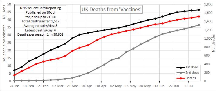 As you are the only person I know who is collecting deaths data over time, could you do a chart showing deaths/jab? (Or even better make your deaths data available in a form where someone else can draw the chart e.g. CSV file.)
