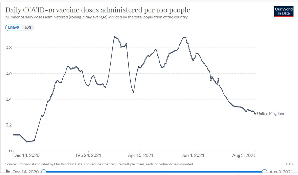 The percentage of young Brits aged 18 to 21 hesitant about getting vaccinated fell to 5% just before ‘Freedom Day’, according to the latest data from the Office for National Statistics (ONS), no doubt at least in part due to constant pressuring from the Government and universities. Sky News has the story.
