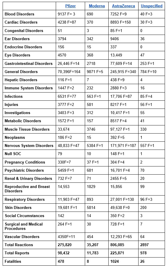 This is the 11th of the regular round-ups of Covid vaccine safety reports and news compiled by a group of medical doctors who are monitoring developments but prefer to remain anonymous in the current climate (find the 10th one here). By no means is this part of an effort to generate alarm about the vaccines or dissuade anyone from getting inoculated. It should be read in conjunction with the Daily Sceptic‘s other posts on vaccines, which include both encouraging and not so encouraging developments. At the Daily Sceptic we report all the news about the vaccines whether positive or negative and give no one advice about whether they should or should not take them. Unlike with lockdowns, we are neither pro-vaccine nor anti-vaccine; we see our job as reporting the facts, not advocating for or against a particular policy. The vaccine technology is novel and the vaccines have not yet fully completed their trials, which is why they’re in use under temporary and not full market authorisation. This has been done on account of the emergency situation and the trial data was largely encouraging on both efficacy and safety. For a summary of that data, see this preamble to the Government’s page on the Yellow Card reporting system. (Dr Tess Lawrie recently wrote an open letter to Dr June Raine, head of the MHRA, arguing that: “The MHRA now has more than enough evidence on the Yellow Card system to declare the COVID-19 vaccines unsafe for use in humans,” a claim that has been “fact checked” here.) We publish information and opinion to inform public debate and help readers reach their own conclusions about what is best for them, based on the available data.