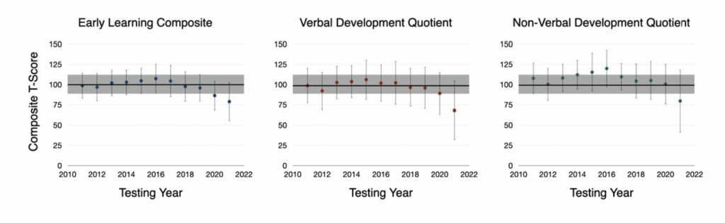 The biggest reason behind the falling scores is likely the lack of stimulation and interaction at home, said Deoni. “Parents are stressed and frazzled… that interaction the child would normally get has decreased substantially.”