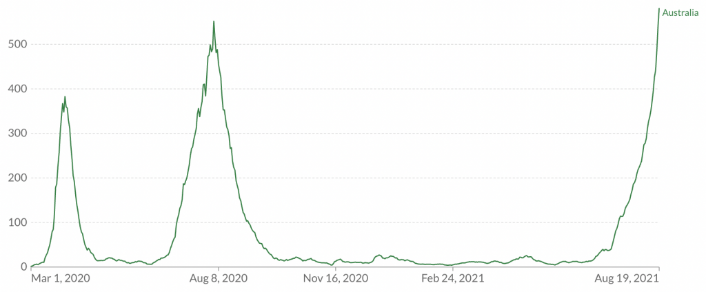Until quite recently, Australia was the poster child for lockdown (along with New Zealand). Capitalising on its favourable geography, the country used a combination of strict border controls and early lockdowns to prevent the virus getting a foothold.