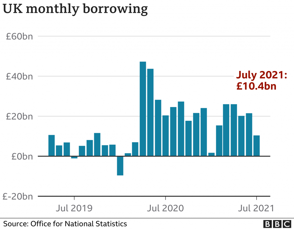 Borrowing – the difference between spending and tax income – was £10.4 billion, official figures show, which was £10.1 billion lower than July last year.
