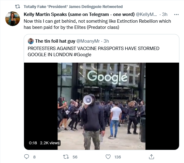 I see that anti-vaccine passport protestors have stormed Google headquarters in London.
