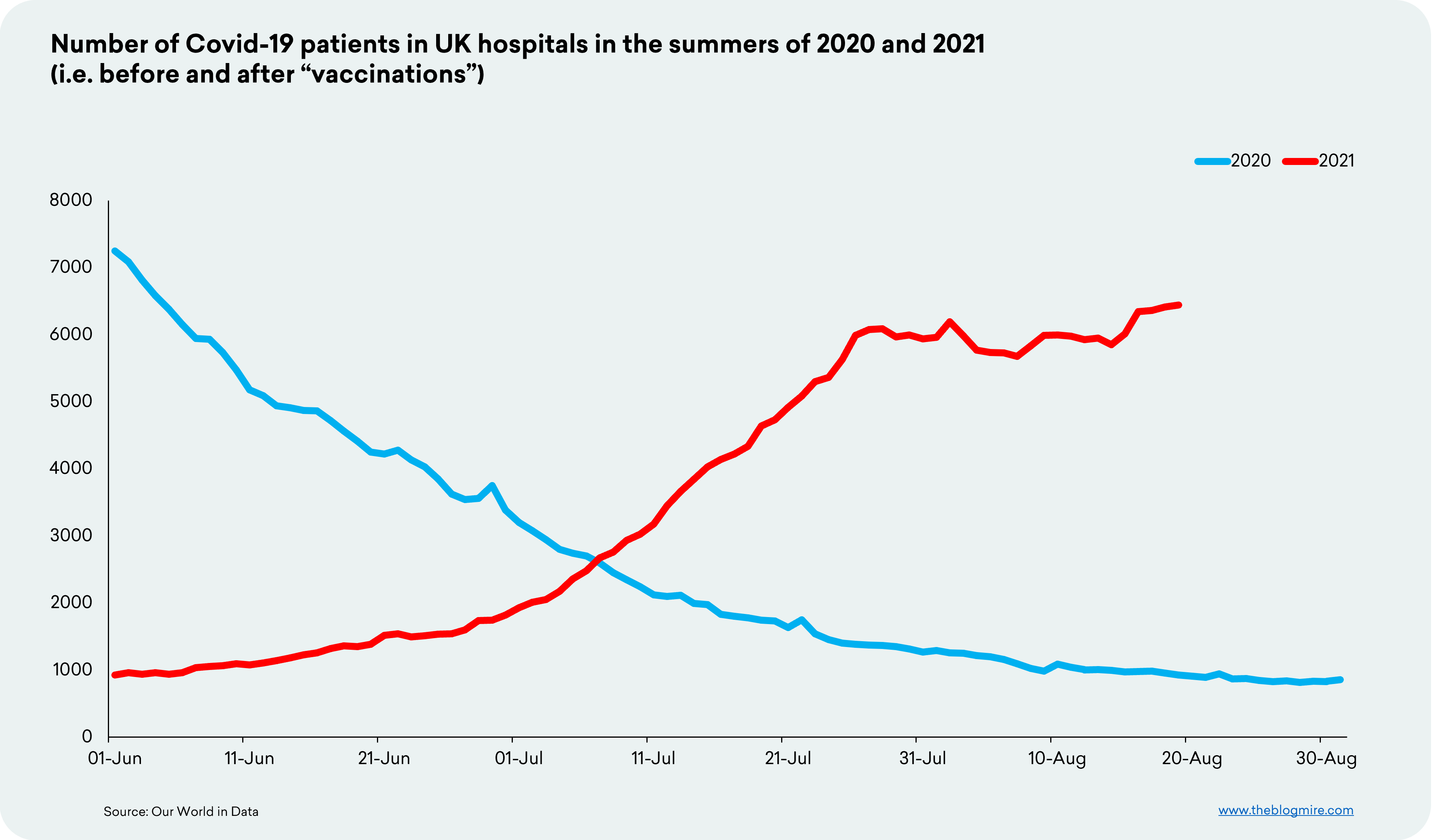 Hospitalisation trends before and after vaccines. 2020-2021