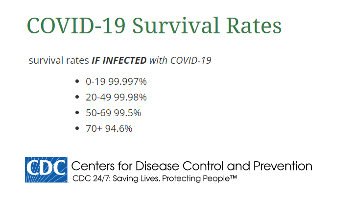 I have just recovered from covid – part of the 99.5% that do recover in my age group. of course, the 0.5% who die are not average – they are the sickest 0.5% so I’d have my personal survival odds at more like 100%.