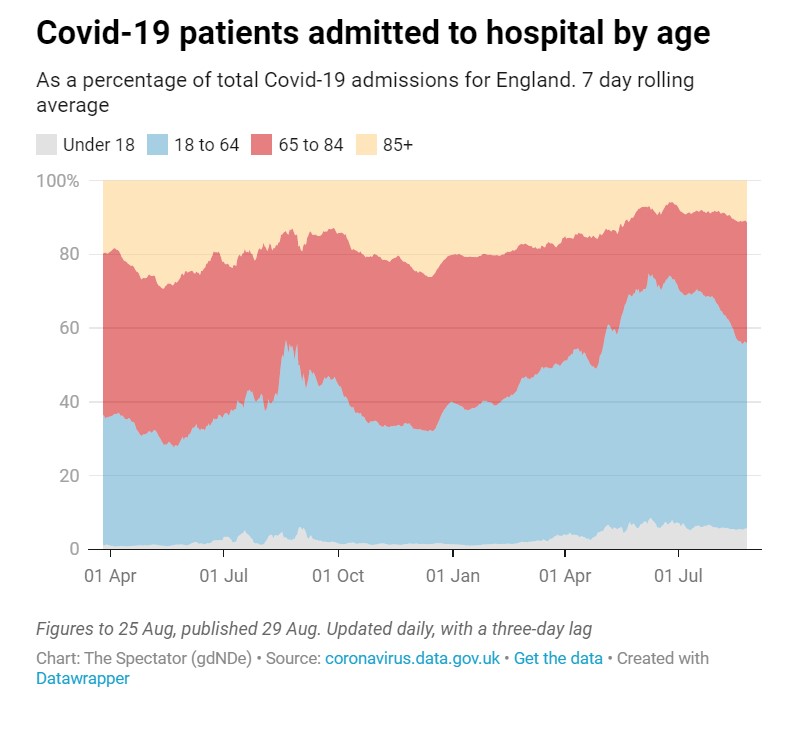 I guess it’s useful to know, because this will be weaponised by Sage. The schools return in a few days – testing zooms up – “cases” are found in the young – much regretful head shaking, fear porn stepped up, weather gets colder, more hospital admissions, more hospitals spread Covid to the vulnerable who maybe have Covid worse because of the jabs. Ie, what’s happening in Israel about to happen here.