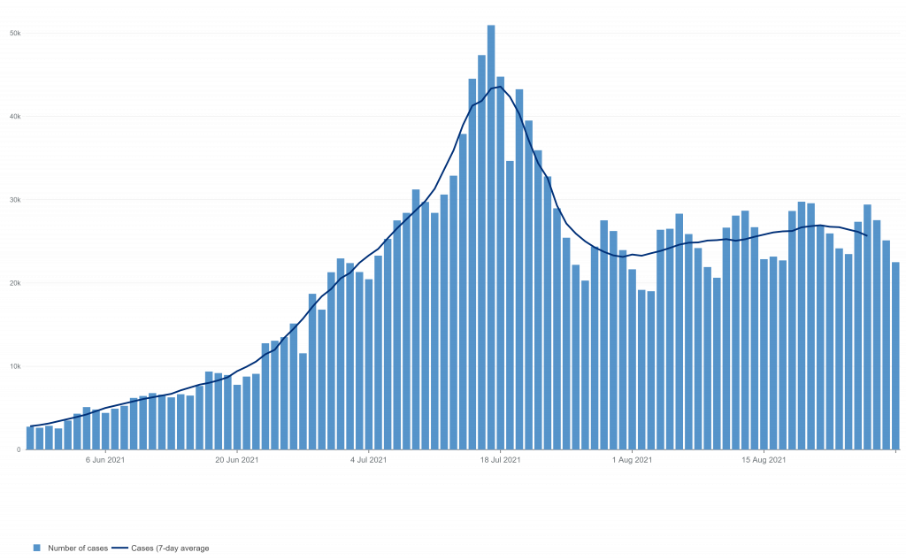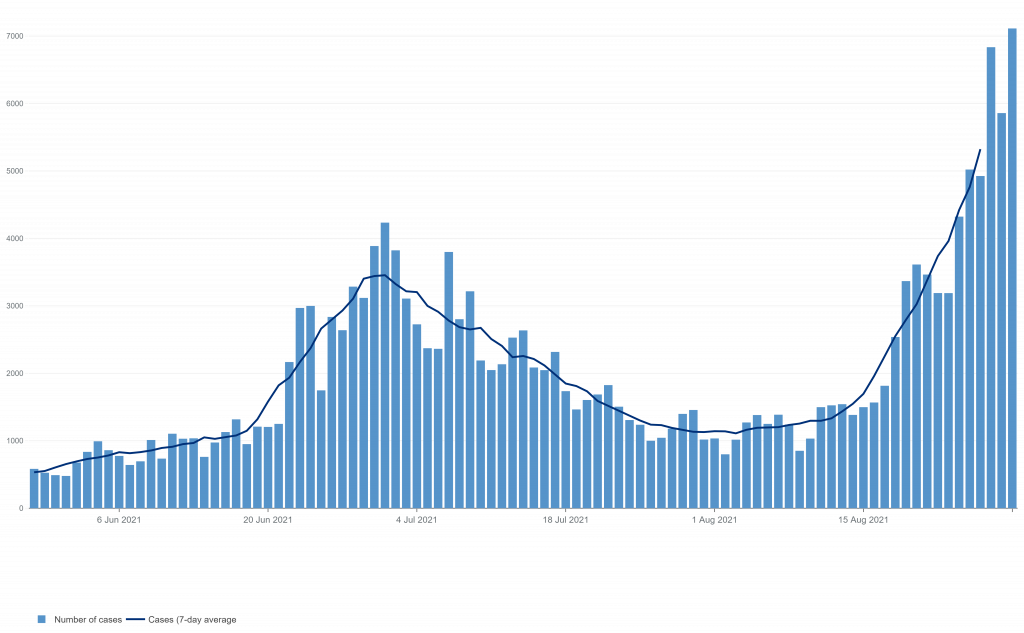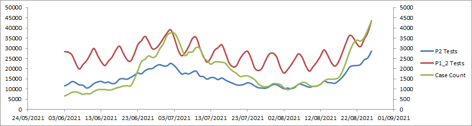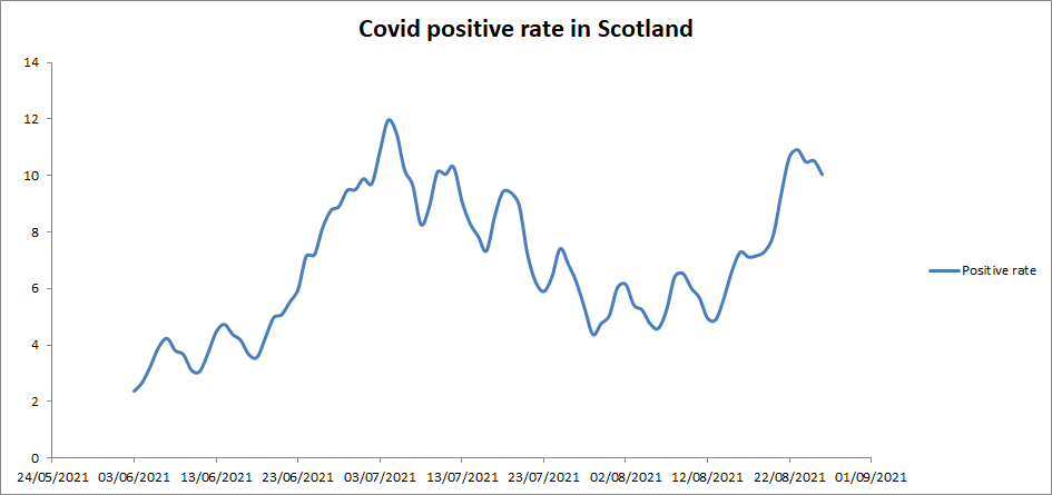 The Scottish surge in ‘cases’ is linked to a surge in testing – it seems that parents have not been testing their children over the summer, and the requirement to do so for school has picked up a load of hidden infections (presumably these children and their families have not been isolating over the summer either).