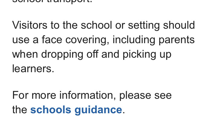Dear Toby, I would like to draw your attention to the entire county of Powys, which has defied Welsh gov advice until further notice. The whole county is still under the same restrictions as it was in July, including masking in classrooms. This has been the case since September 2020. Our minister who holds the portfolio for education Mr Phyl Davies, who I assume, is making these county wide decisions when asked for some time to discuss the masking of children replied “I have 2 minutes for this- I don’t think we need more than that.” I was unable to engage with him again. Parents of all schools in Powys are also required to were face masks OUTSIDE when collecting children ( some of them 4 years old after first days at school) yet we can all have a vino in the pub together sans masks( quite rightly) – what the hell?? Do let me know if it would be useful to see some of the letters we are getting sent home to justify these decisions- if it were not such a God awful situation for the kids it could be funny.