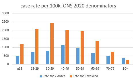 “The PHE data doesn’t tell the full story, in part because you get a very different idea of vaccine effectiveness if you use ONS (not NIMS) to estimate the number of unvaccinated people. See details in thread”