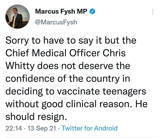 Stop Press: Sarah Knapton, the Science Editor of the Telegraph, points out that Chris Whitty’s recommendation was distinctly lukewarm, which is bound to create confusion among parents.