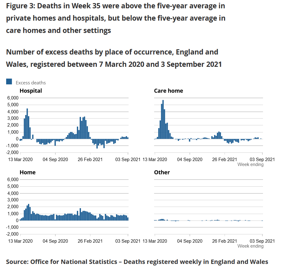 The continuing number of home deaths (well above the 2015-2019 average) showing in the ONS figures (as compared to hospital deaths which are close to the 5 year average) would back this up
