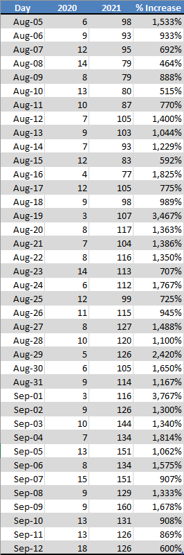 Just wondering if Will or this “in-house doctor” are ever going to give their thoughts on this phenomenon of “Covid deaths” being 10-15 times higher this August/September (with 80%-90% “vaxxed”) than they were last August/September, when no-one was “vaxxed”.