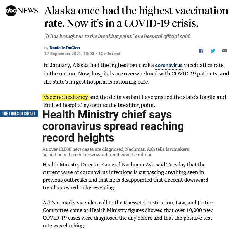 Mega-vaxxed Israel and Alaska are simply too stupid or corrupt to see the obvious correlation between the vaccine rollout and cases. For them to insinuate that the ‘vaccine hesitant’ are part of the problem is beyond satire. If people can’t see what is really going here, then the human race deserves everything that’s coming its way.