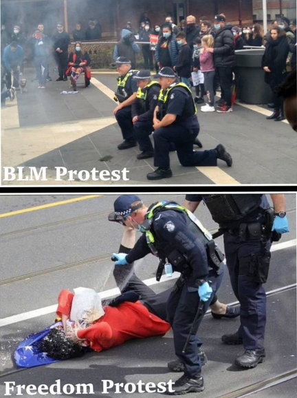 On hypocrisy, however, the Left takes the cake (as this graphic from the hellhole of Victoria – ruled by Andrews, a creature of the Labor Party’s ‘Socialist left’ faction).