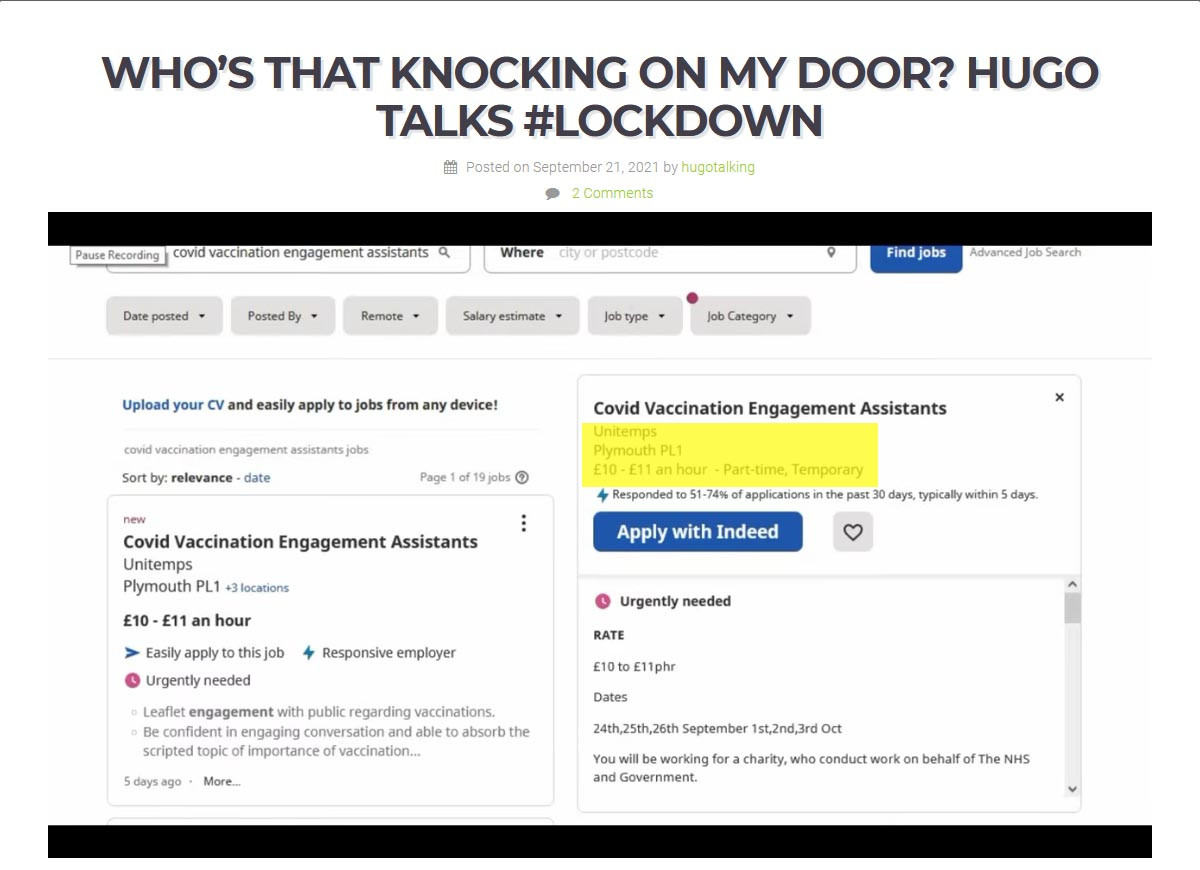 They’re recruiting in Plymouth and elsewhere now! Creepy, but somehow apt for a ‘dolt’.