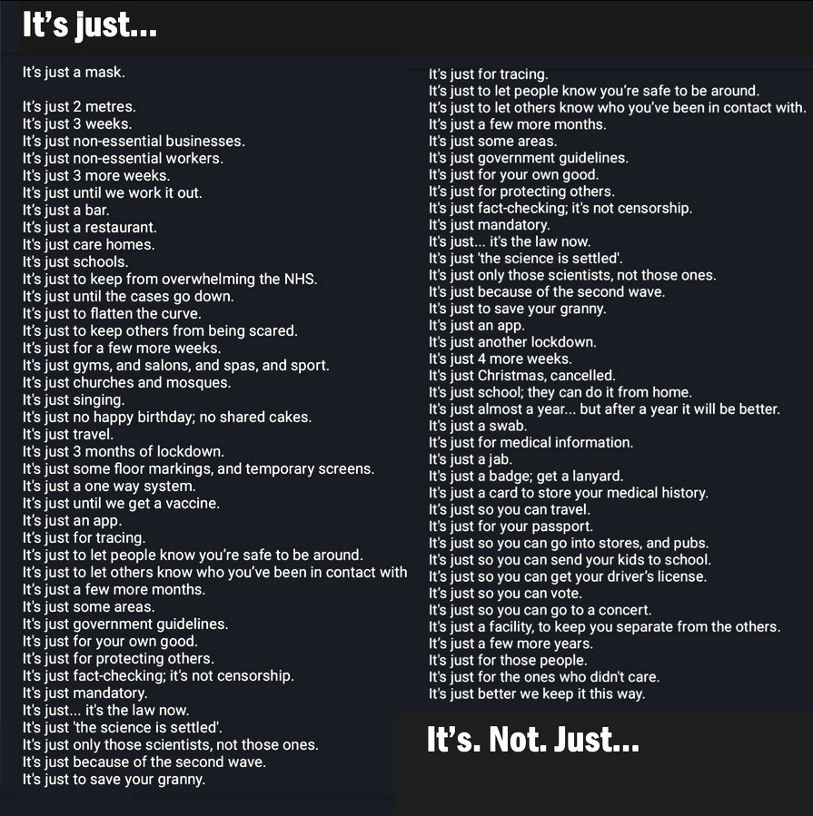 Yes, they have done a real job on the population using fear as the ultimate persuader that the virus is coming to get us all and only they and their precious lockdowns and jib-jabs can save us.