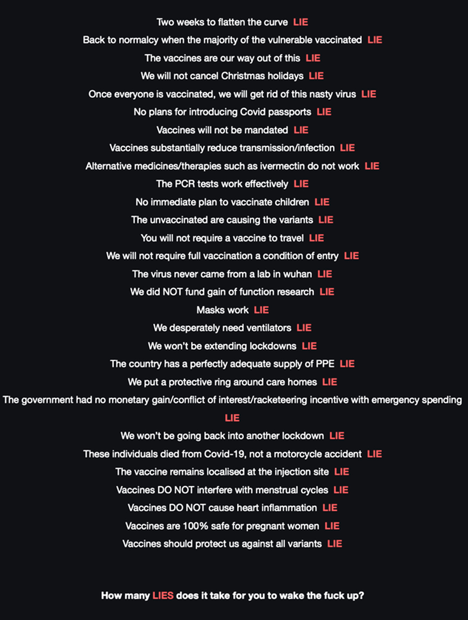For governments, it’s keeping the pandemic going, some combination of pure evil and utter insanity – hard to know the measure of each.