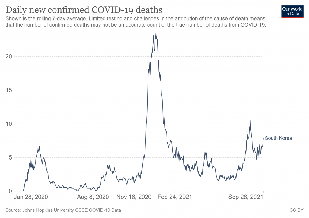 Despite these enviable Covid stats, though, the country is currently living under various Covid restrictions and the Government has said that while it plans to reopen, it will reverse course should ‘cases’ go above 4,000 per day. Why? According to the Government’s Minister of Health, Kwon Deok-cheol, the South Korean “healthcare system would not be able to cope with 4,000 or 10,000 new confirmed cases per day”.