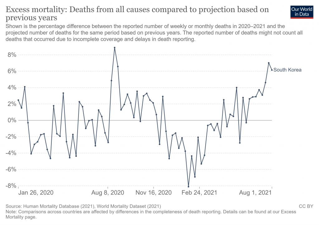 South Korea had given a first dose of the vaccine to about a third of the population by the end of July, but over the last two months have stepped up efforts and they’ve now given a first dose to 3/4 of the population and have double jabbed about half.
