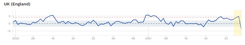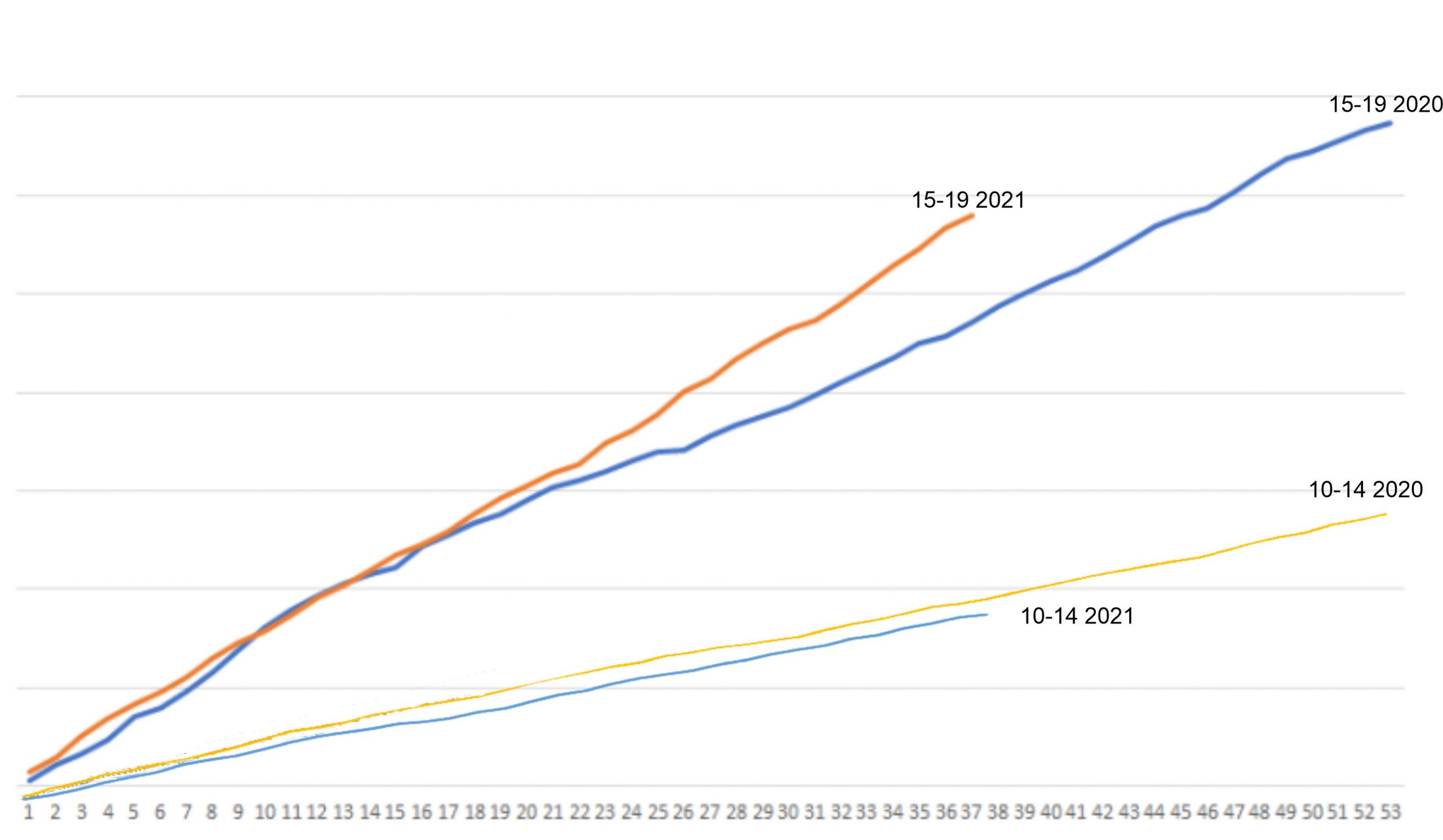 Between weeks 23 and 37 in 2021 there have been 252 deaths among 15-19 year-olds in England and Wales. This compares to 162 in the same period in 2020, an increase of 90 or 56%. That’s a lot, and deserves some kind of explanation.