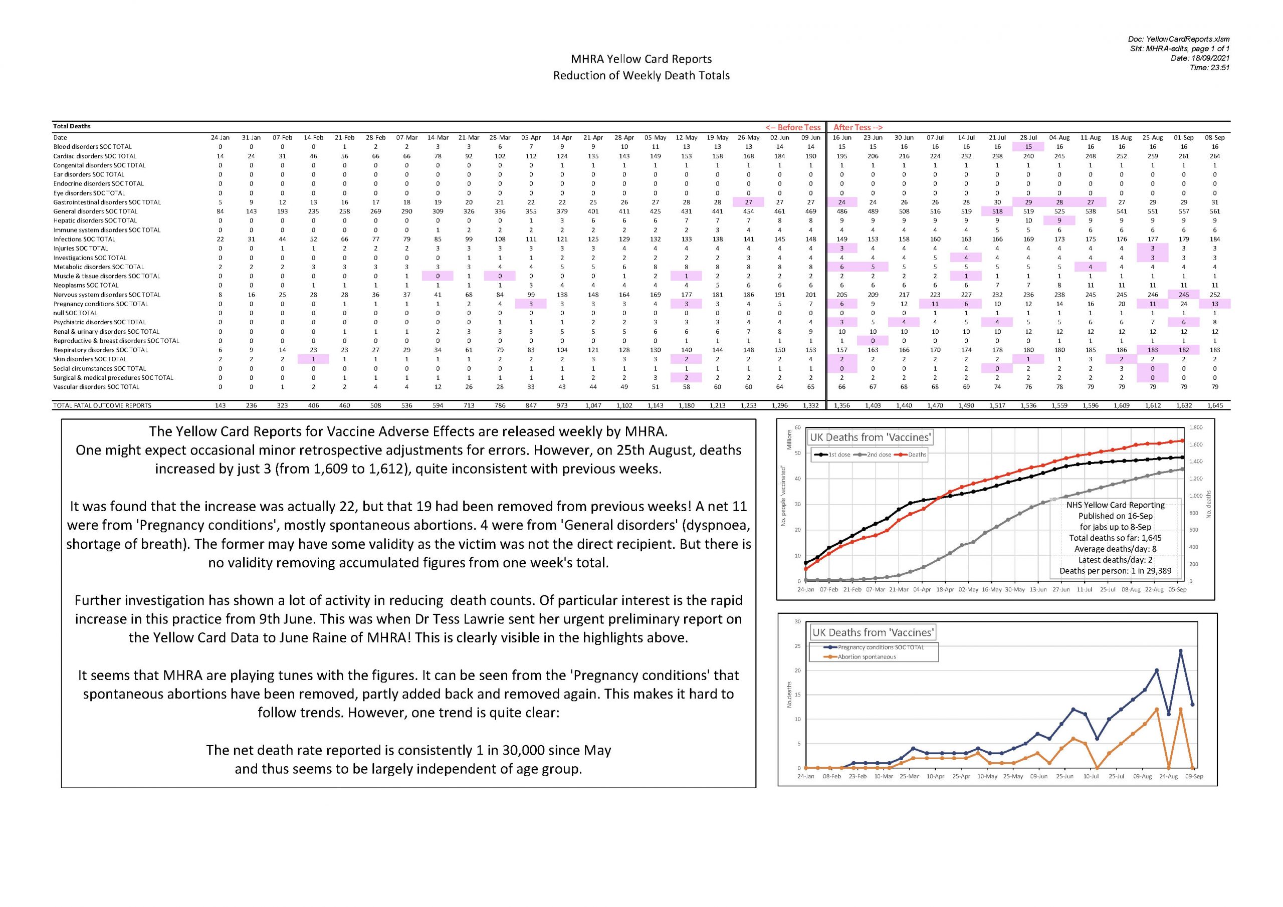 They did not follow up Dr. Tess Lawrie’s urgent report on 9th June. However, they did react. They began to remove accumulated deaths from the current week. See attached.