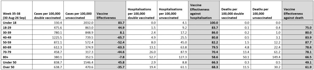 “. . . The vaccine effectiveness in the groups most affected by vaccine passports – the under 30s – is extremely high and increasing.”
