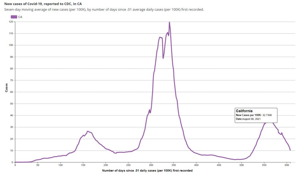 Could it be because the study period ended on August 8th, when the Delta surge in California was just getting going (see below)?