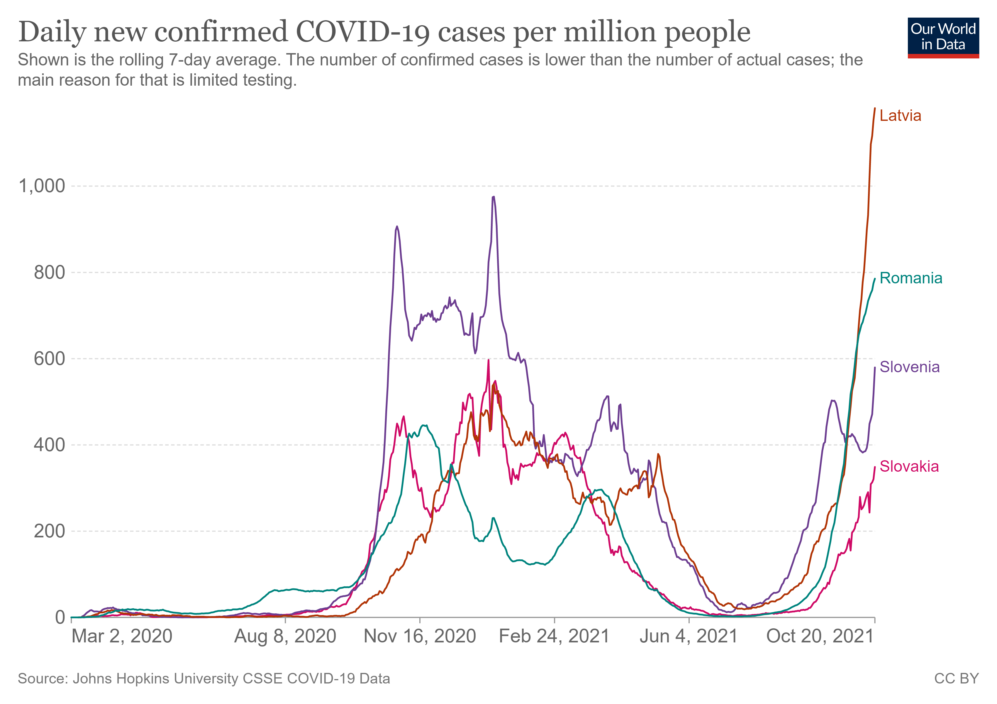 - Reported cases in Slovenia, Slovakia and Romania peaking around about now.