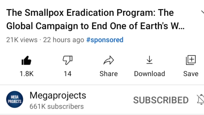I’ve just watched a 20 minute YouTube vid about the worldwide elimination of smallpox (achieved mid 1970’s).