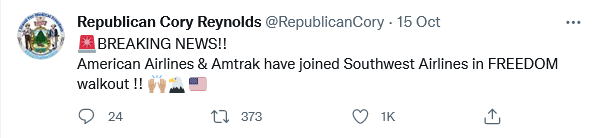 American Airlines and Amtrak join SouthWest Airlines in Freedom walkouts against mandatory vaccines …