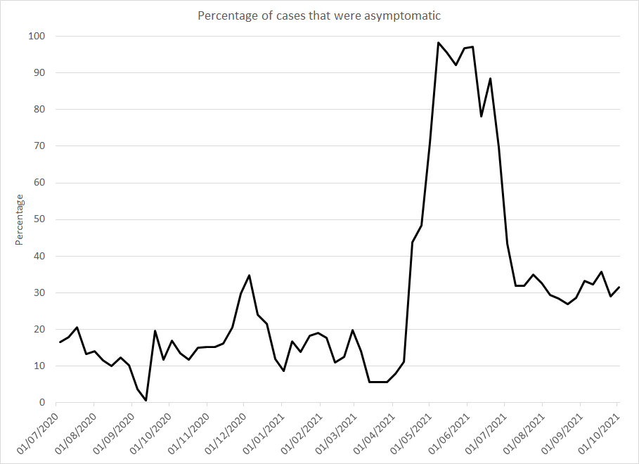 Significantly, it was a period in which, according to analysis of Government data by HART, almost all positive tests were from asymptomatic individuals.