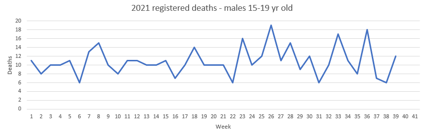 Registered deaths 2021 males 15-19 yrs – up to week 39