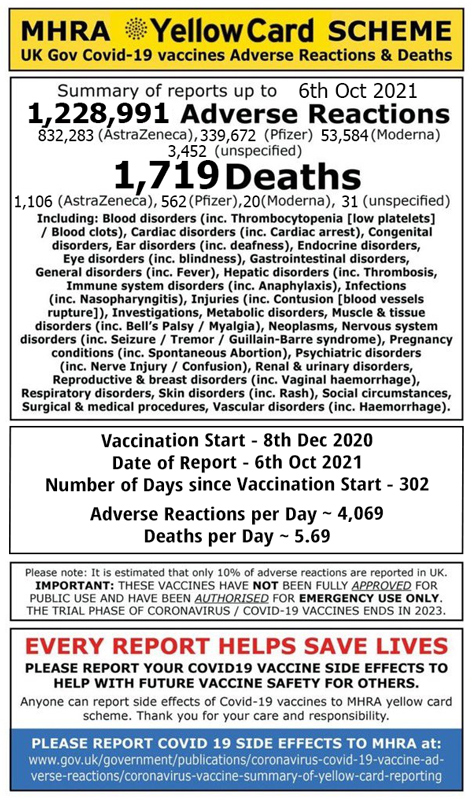 Yellow Card Reporting Data as of 6th Oct 2021