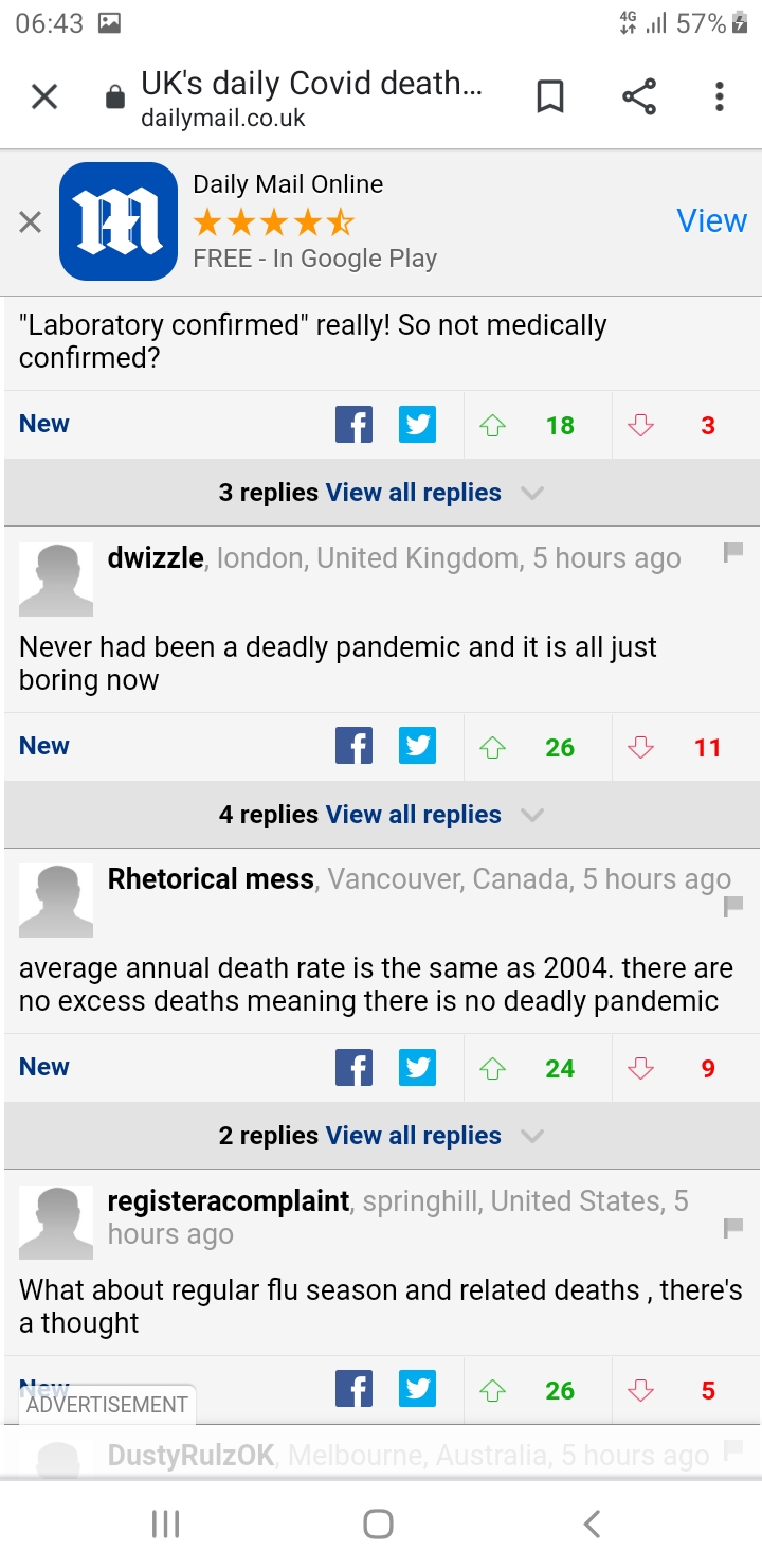 I include the attached for those who do not believe DM readers to be well informed (if not by the DM). It is a random set of newest comments, avoiding adverts.