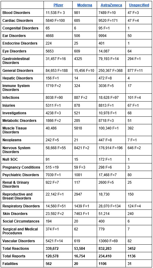 This is the 14th of the round-ups of Covid vaccine safety reports and news compiled by a group of medical doctors who are monitoring developments but prefer to remain anonymous in the current climate (find the 13th one here). By no means is this part of an effort to generate alarm about the vaccines or dissuade anyone from getting inoculated. It should be read in conjunction with the Daily Sceptic‘s other posts on vaccines, which include both encouraging and not so encouraging developments. At the Daily Sceptic we report all the news about the vaccines whether positive or negative and give no one advice about whether they should or should not take them. Unlike with lockdowns, we are neither pro-vaccine nor anti-vaccine; we see our job as reporting the facts, not advocating for or against a particular policy. The vaccine technology is novel and the vaccines have not yet fully completed their trials, which is why they’re in use under temporary and not full market authorisation. This has been done on account of the emergency situation and the trial data was largely encouraging on both efficacy and safety. For a summary of that data, see this preamble to the Government’s page on the Yellow Card reporting system. (Dr Tess Lawrie in June wrote an open letter to Dr June Raine, head of the MHRA, arguing that: “The MHRA now has more than enough evidence on the Yellow Card system to declare the COVID-19 vaccines unsafe for use in humans,” a claim that has been ‘fact checked’ here.) We publish information and opinion to inform public debate and help readers reach their own conclusions about what is best for them, based on the available data.