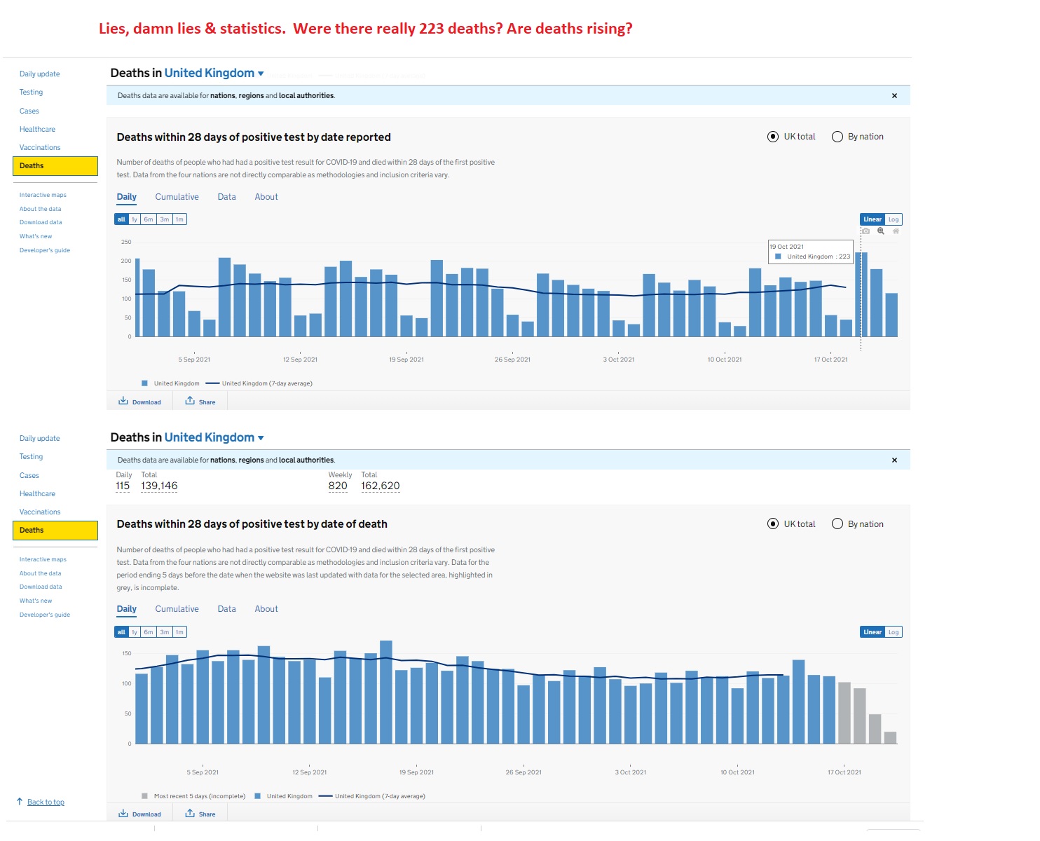 Then also on Tuesday (which happens to be consistently the day of the week with the highest Covid death reports), the misleading statistics alluded to above are peddled out by an official to compliment yesterday’s misleading reporting.